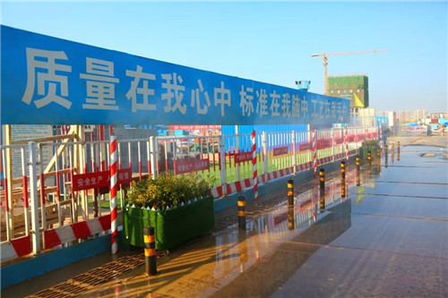 在有序推進建設進度的基礎上,項目施工中嚴格遵守揚塵污染治理和安全生產的相關規定措施,對存在的不足和問題快速徹底整改到位,認真落實市委市政府建設工程揚塵污染治理“四個一律”和“六個百分之百”工作要求,采取在施工現場配備霧炮機進行濕法作業,施工現場道路及材料堆放場地鋪混凝土路面或鋼板路面進行硬化處理,安裝智能化揚塵檢測系統及綠網覆蓋等措施,確保各個階段揚塵防治工作萬無一失。