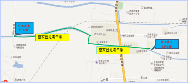 曹家圈虹吸干渠的流域范圍集中在小清河以北的建成區內。近些年來隨著城區北部的開發建設,北部片區發展迅速,排污量增加,由于市政排水設施的建設相對滯后,河道周邊污水直接排入河道,污染水體,致使河水黑臭,影響周邊居民生活質量。