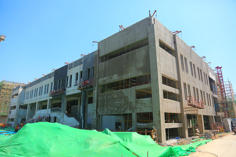 由濟南城市建設集團代建的濟南市大學城實驗學校,自2017年10月31日正式開工以來,建設方與各施工監理單位以“白加黑、5+2”工作節奏,全面有序推進工程建設。前期,經過“大干40天,確保春節前封頂”的強力推進,目前項目所有主要單體主體結構全部封頂。目前,項目已進入裝修裝飾工作的全力沖刺階段,“大干100天,確保完美履約”,保證項目今年6月30日竣工,9月1日達到開學條件。