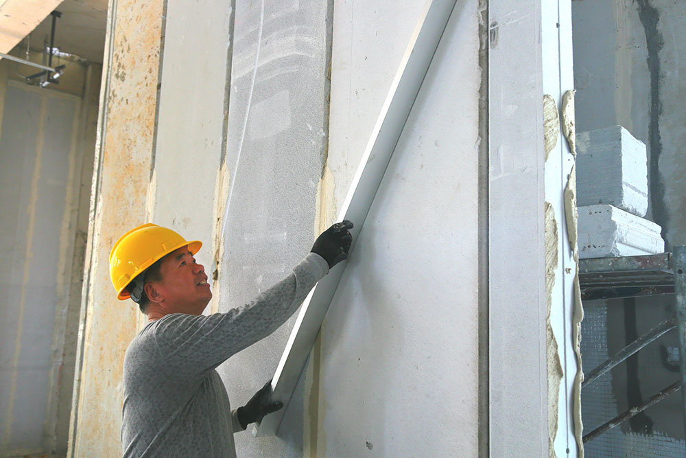 工人在室內進行測量