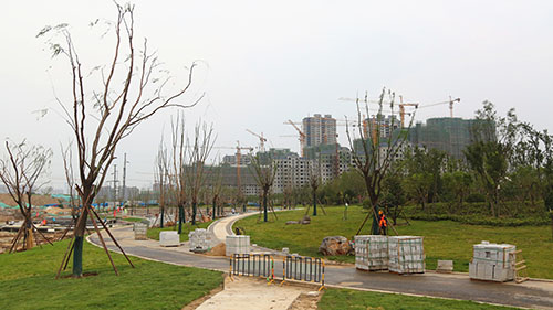 目前,園林一期A區已經基本建設完畢,進入收尾階段。B區正在緊張建設中,作為定位人與自然和諧相處的城市濱水區,現場的林蔭廣場、游船碼頭、兒童歡樂天地、親水沙灘、臺地廣場、音樂噴泉等配套服務設施已現雛形,預計6月底主體建設完工。C區位于華山正南方,處于整個濕地公園的中軸線和橋梁連接部位,定位為歷史文化區,也是整個濕地公園的主入口區,為三個區域中占地面積最大的區域,近期也將啟動建設工作。