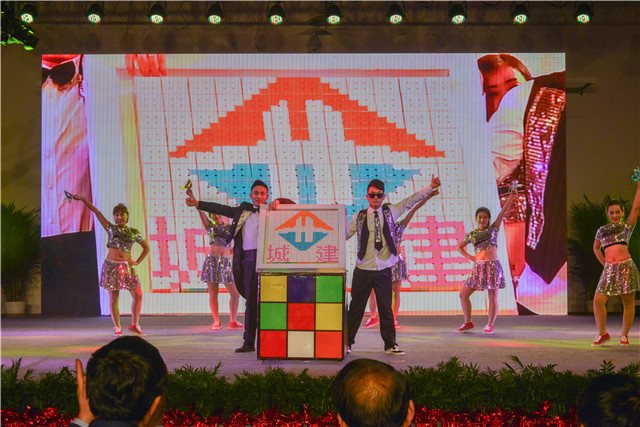 在歡快喜悅的歌舞《拜新年》中,匯演拉開序幕,紅紅火火的舞臺,映射著蒸蒸日上的發(fā)展勢頭。舞蹈《成長》《奮進(jìn)》以激昂的音樂,吹響了催人奮進(jìn)的號角,用動感的舞步,舞出了城建鐵軍的蓬勃朝氣。《馬路情緣》《鐵軍男相親記》《生日》《真相》《男爭女辯》《筑夢同行》等語言類節(jié)目圍繞生產(chǎn)經(jīng)營精心編排,真實感人,催人奮進(jìn)。勵志感人的歌曲,絢麗多彩的歌伴舞,酷炫的舞蹈,神秘的魔術(shù),魔幻的黑光劇,生龍活虎的京劇,讓觀眾著實過了一把眼癮,臺下掌聲不斷,歡欣喜悅的氣氛一浪高過一浪。小品里父母、妻子、孩子那一段段心里話,令人感同身受,潸然淚下,家屬們用實際行動表達(dá)了對企業(yè)最大的理解和支持,大家在這個溫暖的大家庭中,以誠相待,溫馨彼此。在激動人心的歌舞串燒《開創(chuàng)未來》中,匯演圓滿落下帷幕,集團(tuán)領(lǐng)導(dǎo)與演職人員合影留念。