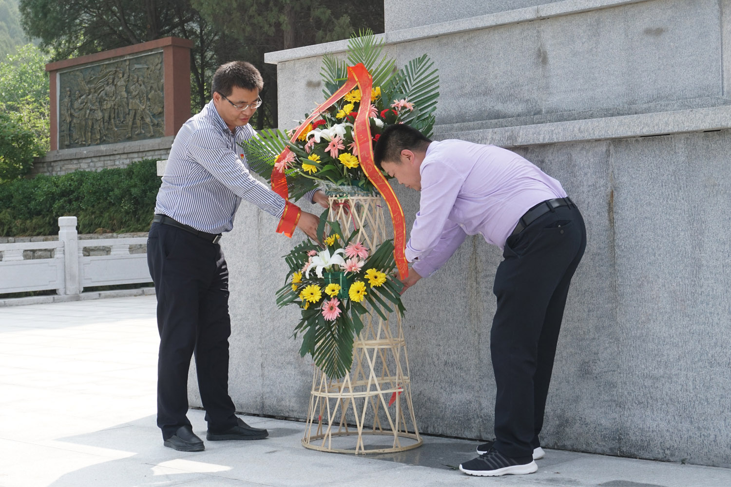 隨后,在初心廣場,在鮮紅的黨旗下,全體黨員重溫入黨誓詞。鏗鏘有力的誓言在大峰山久久回蕩,充分展現了全體黨員干部堅守初心、忠誠于黨、團結奉獻的堅定信念,并到大峰山革命烈士陵園,向烈士敬獻了花籃,全體黨員干部面向莊嚴的紀念碑鞠躬默哀,深刻感受革命先輩斷頭流血的忘我精神,以及在國與家、生與死的考驗面前對崇高革命信仰的堅守與執著。