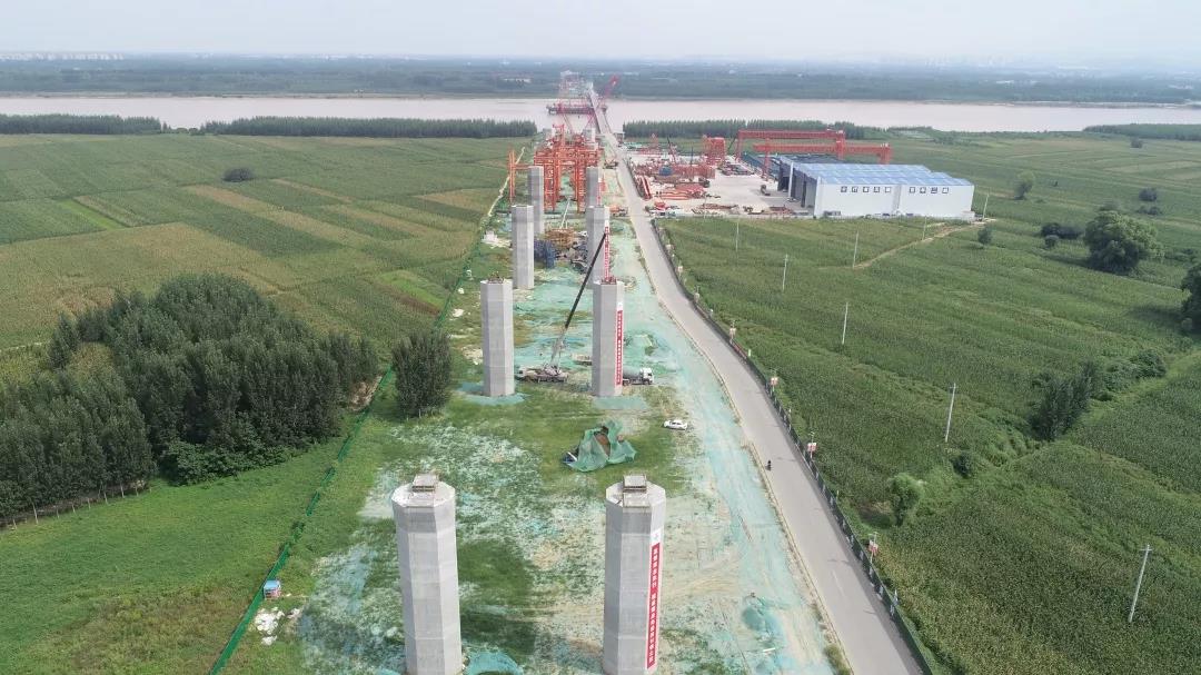 由濟(jì)南城市建設(shè)集團(tuán)負(fù)責(zé)建設(shè)的鳳凰路黃河大橋工程(G220至濟(jì)青高速公路王舍人互通立交連接線工程)位于濟(jì)南市歷城區(qū)、高新區(qū)、濟(jì)陽區(qū),項(xiàng)目路線南起壩王路與荷花路交叉口,接現(xiàn)狀壩王路,依次跨越邯膠鐵路聯(lián)絡(luò)線、南水北調(diào)工程濟(jì)東明渠后繼續(xù)往北,在小河套村向西北方向延伸,跨越黃河后與G220平交。項(xiàng)目全長6683米,包括特大橋2座,其中跨黃河主橋和引橋長3788米,跨邯膠鐵路聯(lián)絡(luò)線及南水北調(diào)橋梁長1323米。