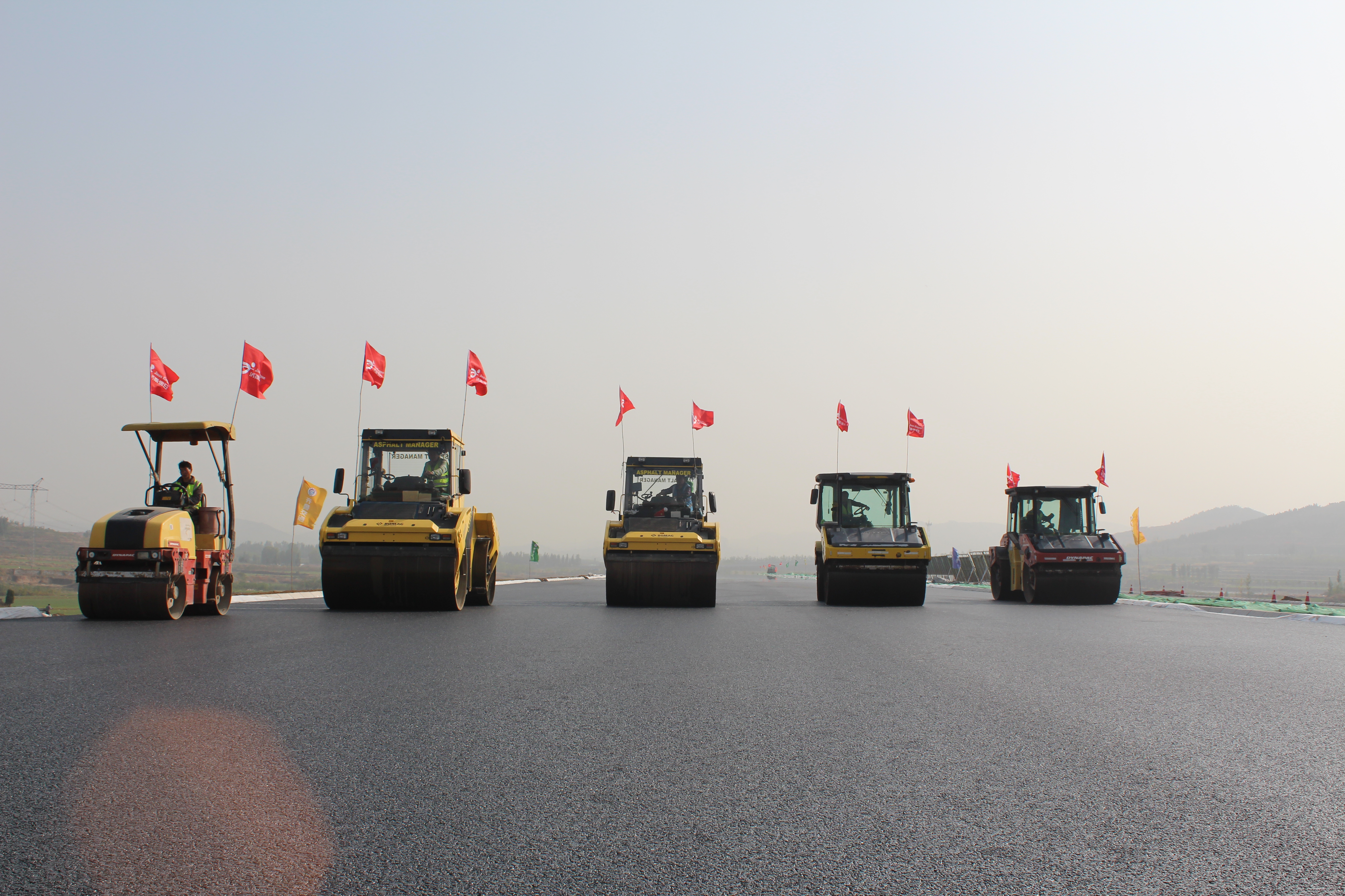 為確保瀝青試驗段順利開工并取得預期效果,工程項目部提前謀劃,合理組織,積極做好開工前的技術安全工作,專門組織試驗、測量、設備操作等相關人員參加的施工技術交底會和設備操作培訓專題會,施工中嚴格控制瀝青混合料的拌合、運輸、攤鋪、碾壓、檢測,各道工序有序配合。
