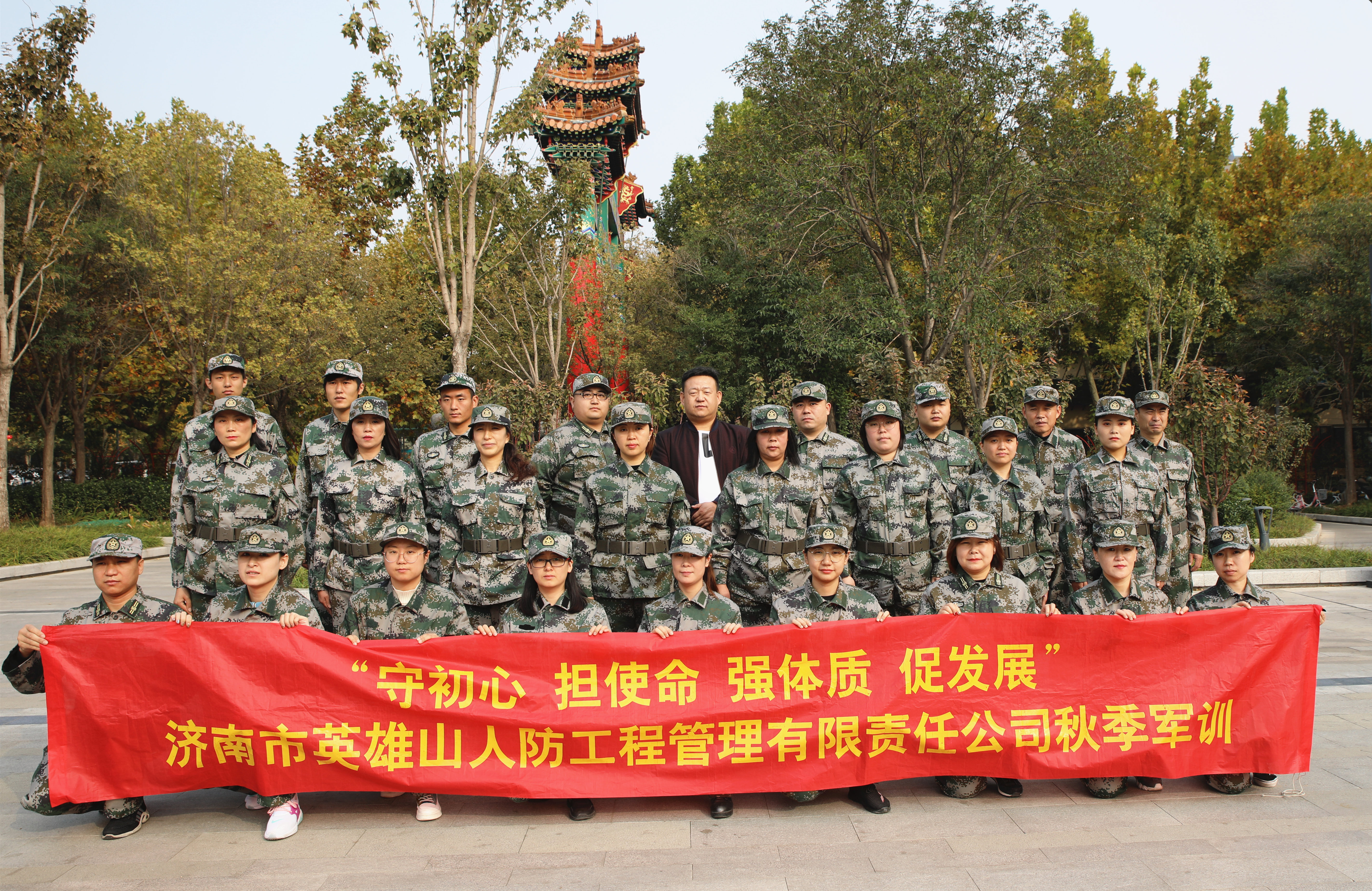 金秋送爽桂飄香,職工秋訓斗志昂。為激發廣大職工的愛國主義、集體主義意識,加強公司管理,提升員工的工作效率和公司的整體形象,營造積極上進的精神風貌和工作態度。濟南市英雄山人防工程管理有限責任公司按照“一年兩訓”的有關規定,從10月8日至11月8日組織全體職工,進行了為期一個月的秋季軍訓。