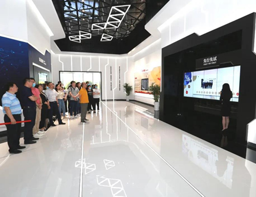 第二站到達先行區城市展廳,參觀濟南新舊動能轉換先行區展廳并觀看了先行區總體規劃多媒體視頻、國博城項目多媒體視頻,全面了解先行區總體規劃和會展中心設計藍圖。