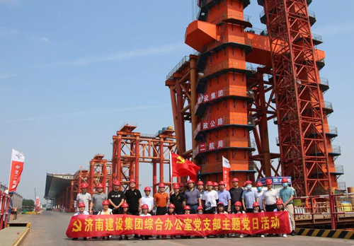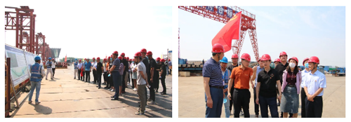 在鳳凰黃河大橋,項目負責(zé)人對鋼塔、鋼箱梁頂推和跨堤引橋施工以及安全、質(zhì)量、進度、環(huán)保和疫情防控等情況進行了介紹,支部成員進行了現(xiàn)場參觀。