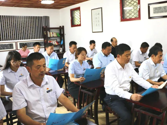座談會結束后,所有參加黨建共建活動人員參觀了大峰山黨性教育基地“紅色南黃崖”教學點,充分感受革命情懷、錘煉黨性意志,并在初心廣場面對黨旗舉起右手,重溫入黨誓詞,莊嚴向黨組織宣誓,叩問內心初衷,堅定理想信念。
