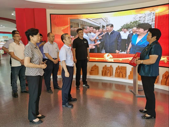 在三澗溪村,工作人員帶領大家重走習近平總書記的考察足跡。在村委會黨群服務中心,深入了解了三澗溪村的成長史、黨組織的發(fā)展歷程、黨組織建設經驗和先進做法,以及“四鄰聯(lián)動”等為民服務體系。在鄉(xiāng)村振興主題展館,工作人員為大家講解了習近平總書記親臨三澗溪村視察指導的有關情形,并結合實物、圖片、視頻、展板等載體講述了三澗溪黨委不忘初心,牢記使命,擔當作為,團結帶領村民脫貧致富的奮斗歷程。期間,工作組與三澗溪村黨委書記高淑貞就黨建引領、鄉(xiāng)村振興等方面進行了暢談交流,參觀結束,全體人員在黨旗前重溫了入黨誓詞。