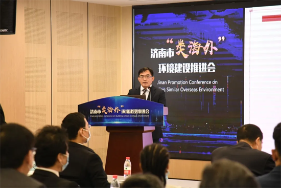濟南泉世界商業管理有限公司負責同志在“濟南市‘類海外’環境建設推進會”發言中表示,印象濟南·泉世界將建設多元文化、宜游環境、服務完備的國際化街區,建設國際鄰里中心、組織文化交流活動、完善生活服務,在配套服務、中英語音講解線上智慧導覽系統、中英韓三國語言標識系統三方面,為外國游客在濟南構筑優越的生活環境。