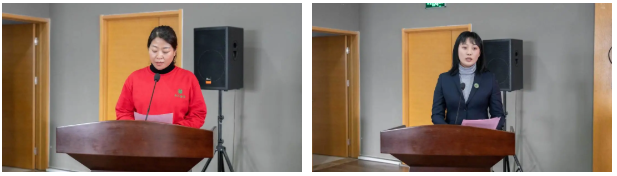 會議中,優秀部門代表郭峰、員工代表王麗娟及金齡之星代表朱秋彤作表態發言。