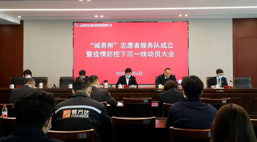 會(huì)議宣讀了公司工會(huì)關(guān)于《山東易方達(dá)建設(shè)項(xiàng)目管理有限公司關(guān)于成立“城易幫”志愿者服務(wù)隊(duì)的決定》,公司黨委書記、董事長牛勇向“城易幫”志愿者服務(wù)隊(duì)進(jìn)行授旗。