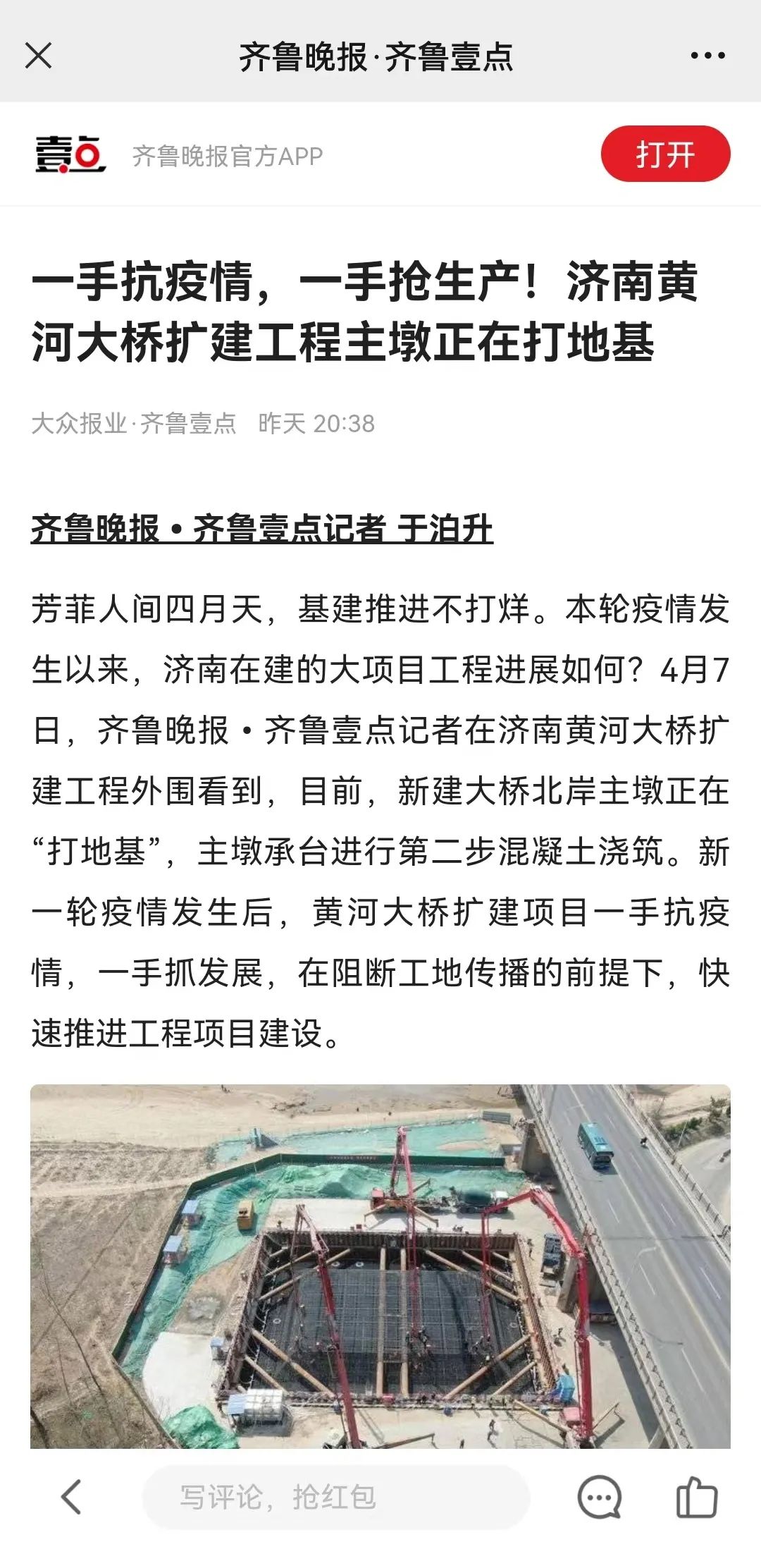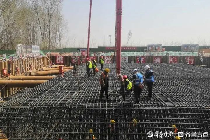 芳菲人間四月天,基建推進不打烊。本輪疫情發生以來,濟南在建的大項目工程進展如何?4月7日,齊魯晚報•齊魯壹點記者在濟南黃河大橋擴建工程外圍看到,目前,新建大橋北岸主墩正在“打地基”,主墩承臺進行第二步混凝土澆筑。新一輪疫情發生后,黃河大橋擴建項目一手抗疫情,一手抓發展,在阻斷工地傳播的前提下,快速推進工程項目建設。