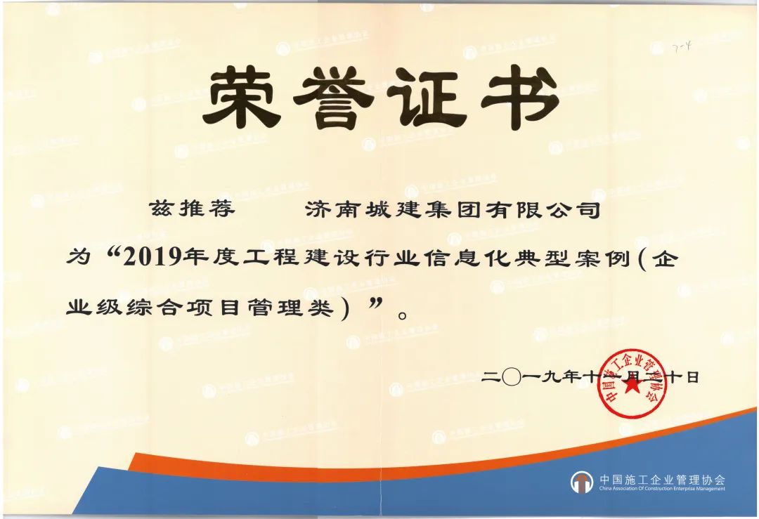 “城建集團公司在2011年以特級資質申報為契機,全面啟動了數字信息化建設,期間不斷優化升級的‘1+N’數字化管理系統在2016-2018年連續三次獲中國建筑業協會‘最佳實踐案例’,2019年被中國施工企業協會評為‘年度企業級信息集成系統應用推薦案例’,其中當年其他三家獲評單位均為央企,并且濟南城建是唯一一家覆蓋全部項目、全部成本要素,能夠核算出整個項目成本的案例”,濟南城建集團有限公司黨委書記、董事長、總經理牟曉巖在市政工程企業數字化管控實踐觀摩會作典型經驗介紹時說道。