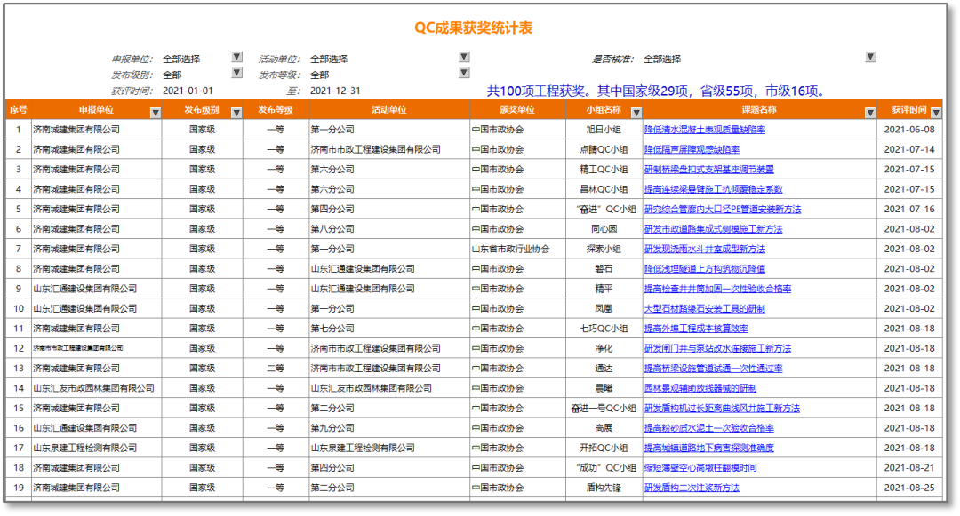 信息平臺數據“不敢用”“不能用”是通病,還需要保留線下報表,主要原因是平臺數據不全、不準,不能給企業日常管理、經營決策提供有力支撐。經過多年積累及開發,城建集團公司編制了600多個報表,實現了多層級、跨部門、多維度時時分析查詢,全面替代了線下表格,實現了企業信息的“標準化、信息化、精細化”。