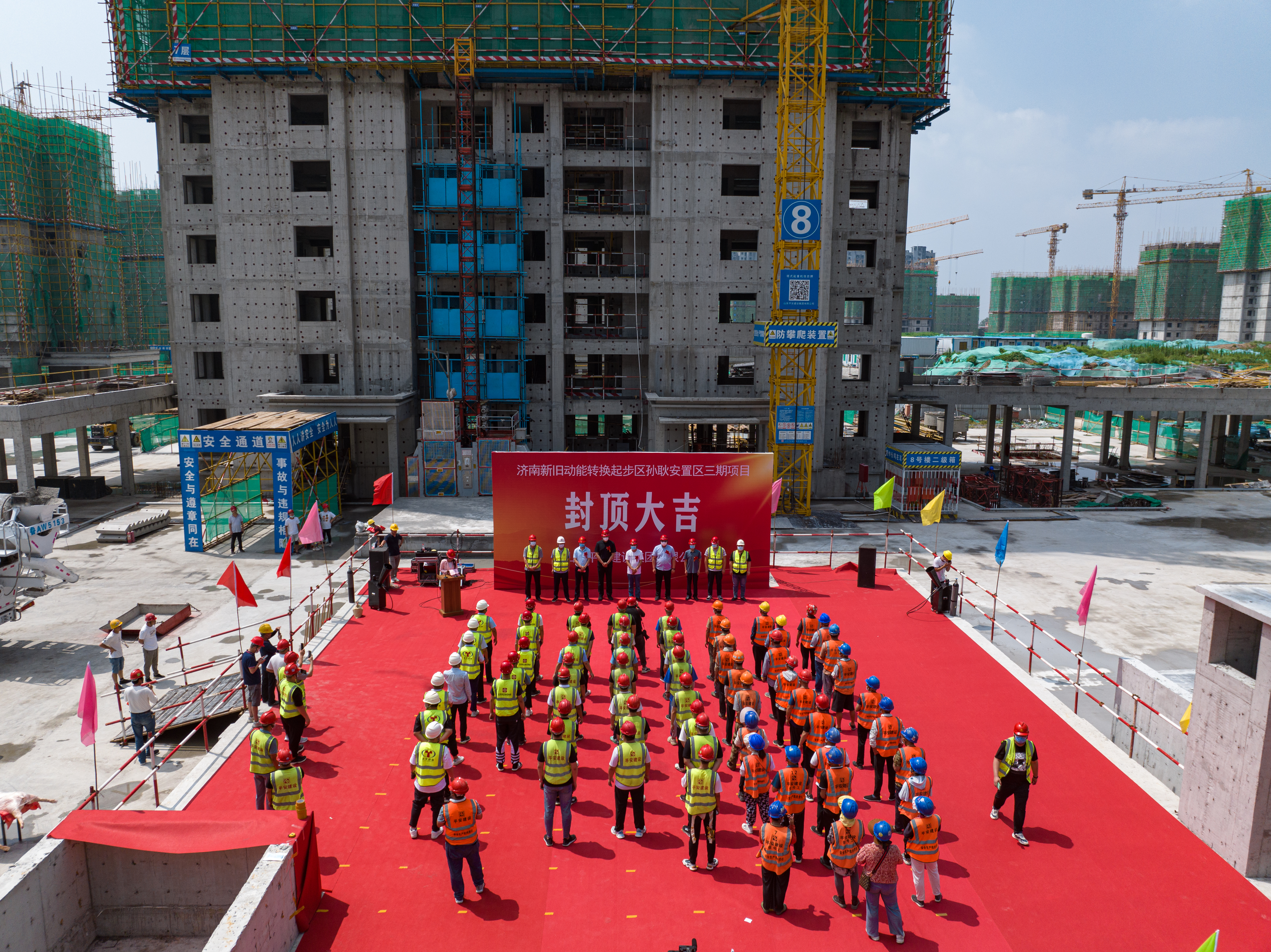 7月1日,隨著最后一方混凝土澆筑,由濟南城市建設集團受委托建設的起步區(qū)孫耿街道七村整合安置區(qū)(三期)項目首棟住宅封頂,項目建設有序推進。