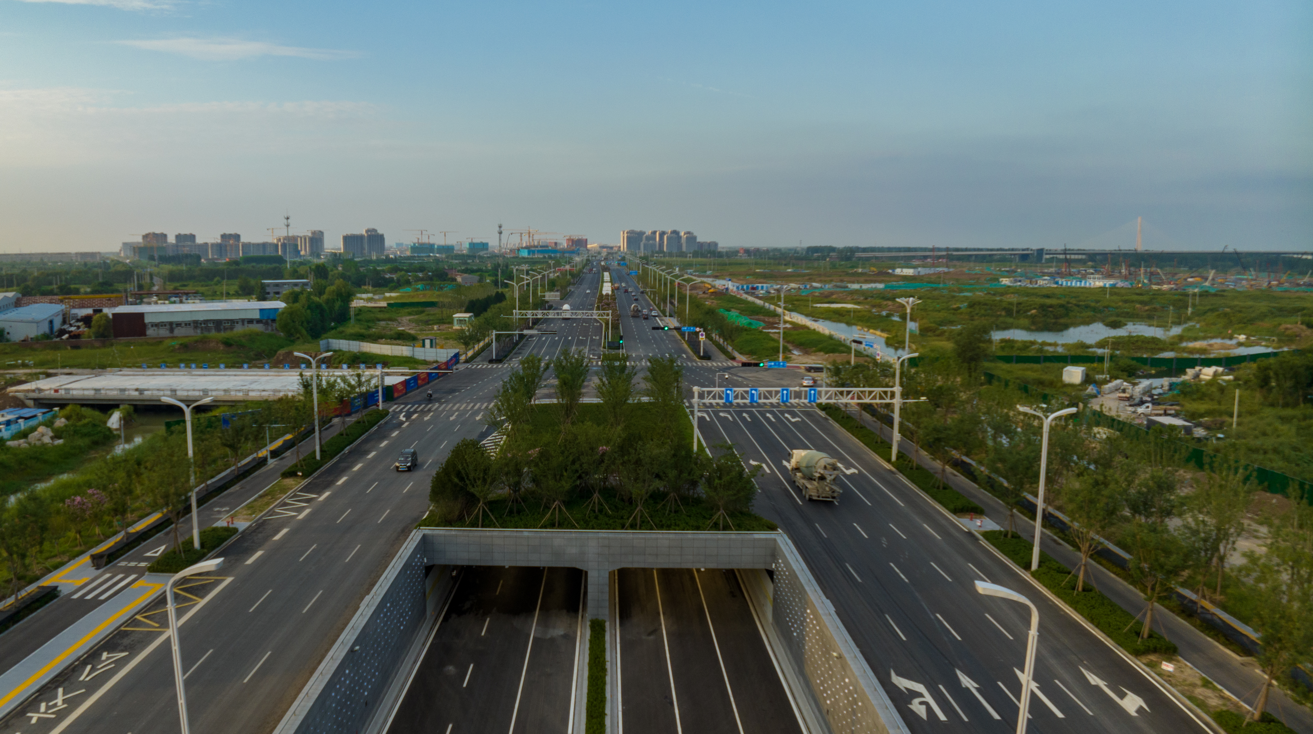 建設過程中,也積極探索各項環(huán)保新舉措。此次通車的路段全線主輔路機動車、非機動車道下面層采用廠拌熱再生瀝青混凝土,節(jié)省大量用料,取得顯著經(jīng)濟和社會效益。采用了環(huán)氧瀝青混凝土作為路面材料,在全市首次實行全厚式瀝青攤鋪技術(shù),有效減少了水泥穩(wěn)定碎石使用量,同時將施工工期縮減為原來的60%左右。而黃河體育中心地道結(jié)合環(huán)評要求,充分利用地道特點及中分帶條件,采用“豎井自然通風為主+射流風機輔助”的復合通風方式,利用地道內(nèi)外風壓差和熱壓差進行通風換氣,無需設置大型軸流風機房,節(jié)約通風系統(tǒng)設備的同時,每年更能節(jié)約用電約500萬度,踐行低碳理念。