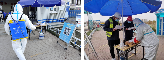 疫情期間,項目處于建設高峰期,施工人員約計1200余人,對工程推進帶來了前所未有的挑戰。項目各參建單位充分認識防疫重要性、緊迫性,各司其職,進一步細化防疫管理體系、強化疫情應急處置能力,并定期調度物資、健康監測、衛生消殺等情況,切實強化主體責任,確保各項措施落到實處。