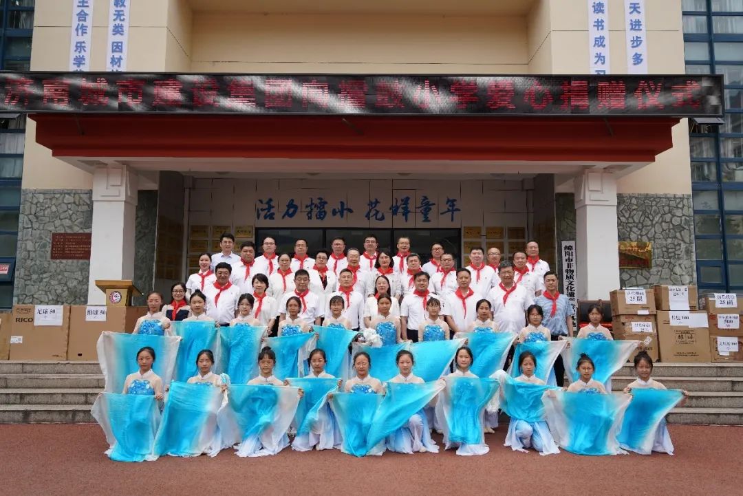 在擂鼓鎮(zhèn)小學(xué),集團(tuán)向?qū)W校捐贈了學(xué)習(xí)用品及辦公用品,擂鼓鎮(zhèn)向集團(tuán)贈送錦旗,孩子們?yōu)榇蠹耀I(xiàn)上了寓意吉祥美好的羌紅。