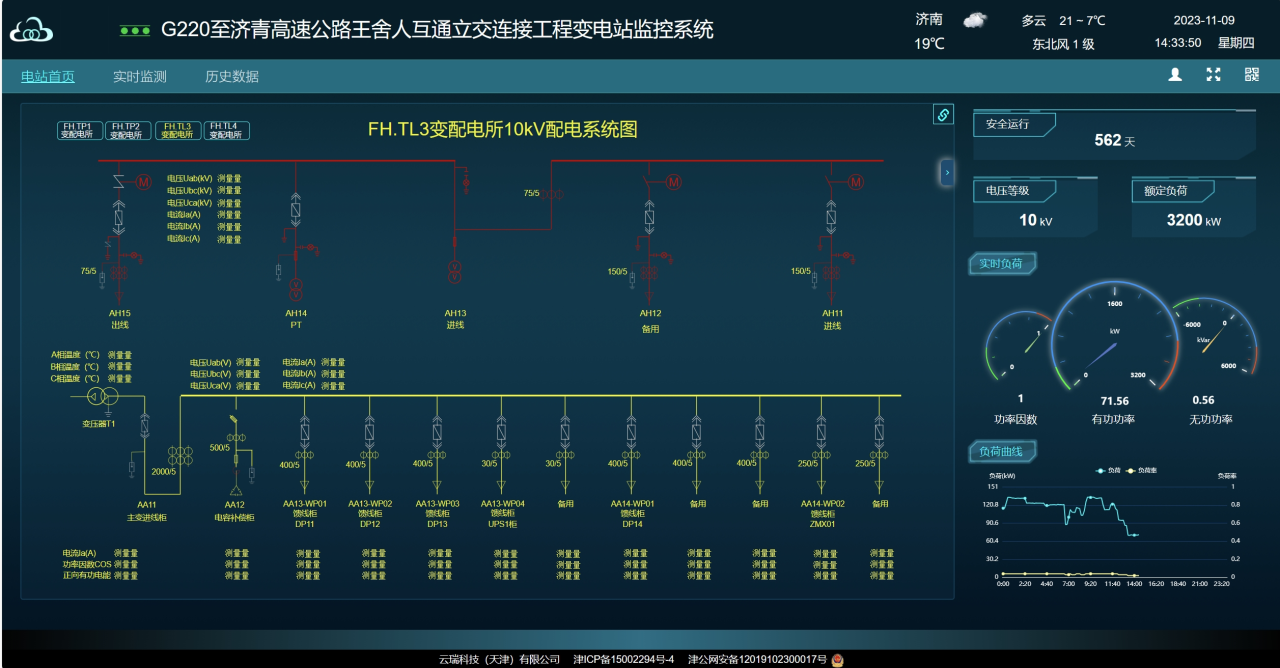 濟南黃河鳳凰大橋通過Reefala變電站智能云監控系統,實時監測電力系統數據,進行全面的運行狀態監控,Reefala系統通過智能分析,及時為管理者提供預警和響應機制。同時,系統具備強大的數據存儲和回溯功能,用戶可以查看歷史數據,對變電站的運行狀況進行深入分析,為鳳凰大橋項目運營帶來了更加安全、可靠、高效的保障。