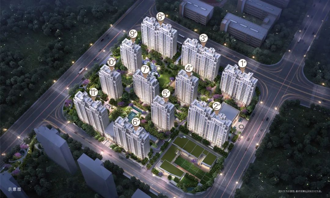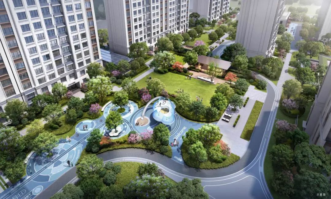小區(qū)園林景觀規(guī)劃兩軸一庭五園的設計,約46.9㎡戶均景觀面積和約1600㎡中庭景觀,涵蓋約100㎡浮光會客廳及草坪劇場,約500㎡全齡段兒童樂園,打造高端園林社區(qū)。