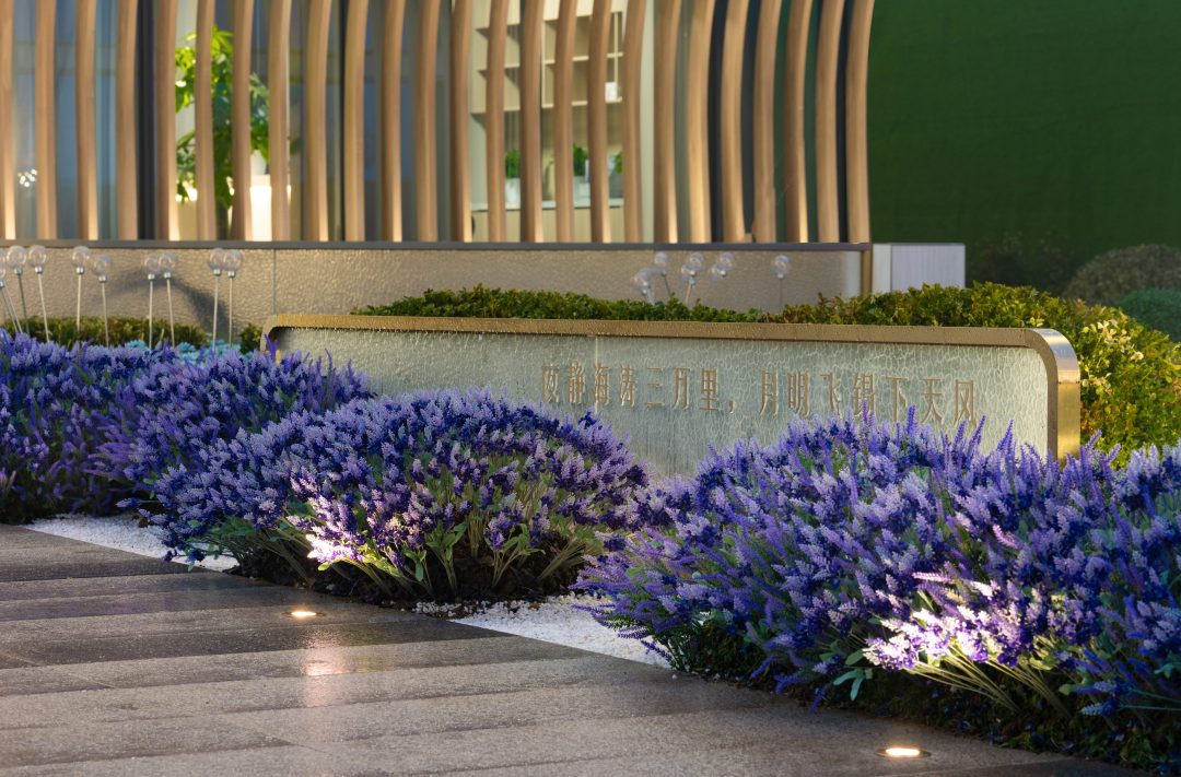 天風錦都項目位于濟南市槐蔭區,遠觀風云平靜,近看風帆揚起,潺潺流水與汩汩噴泉的水景,加之抽象風帆,隔離嘈雜的城市道路與車流,形成廣場藝術空間。鄰邊水景環抱,遠處螢火點點,映襯建筑,大面積白色折線藝術的景墻,形成半圍合室外洽談區,藝術廣場白天是中小型營銷活動的舉辦地、唯美浪漫的室外洽談區,功能復合,靈活多變。