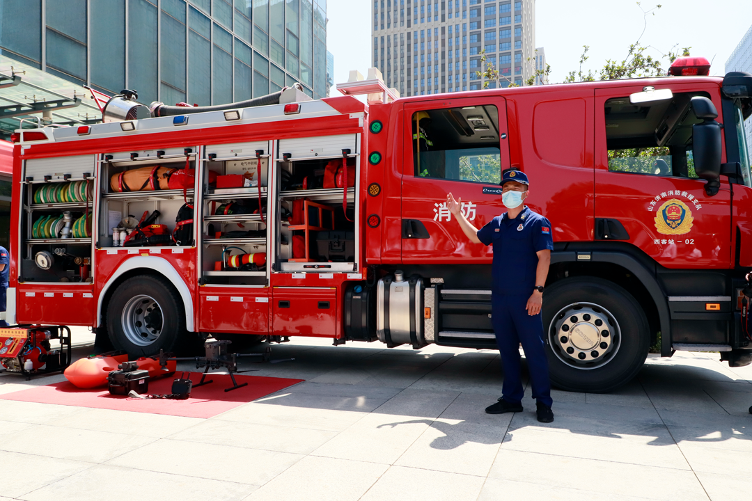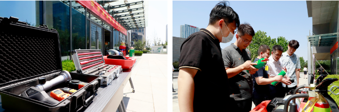 槐蔭區消防救援大隊對消防車上的各式裝備器材及操作方法進行宣講,幫助現場人員認識救援無人機、空氣呼吸器、方位指示燈等裝備器材。同時,在宣講員手把手的教學中,現場人員熟練掌握了“拔、握、瞄、掃”的滅火器使用方法并進行了滅火實戰演練。實戰演練結束后,現場人員在安全生產承諾墻上簽下名字,承諾將以身作則,堅守安全紅線,遵守安全生產法。