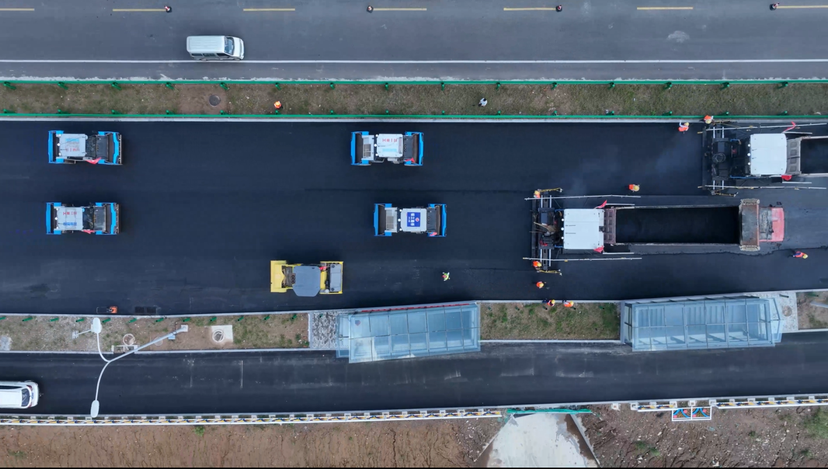 省內首次!金曰公司利用智能無人化機群進行SMA瀝青面層施工作業