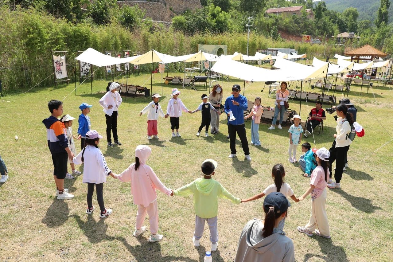 活動(dòng)第一站,在孫家莊村“柿子樹下”露營(yíng)基地戶外草坪組織兒童戶外游戲,增進(jìn)孩子們相互間了解,增強(qiáng)團(tuán)隊(duì)合作意識(shí)。