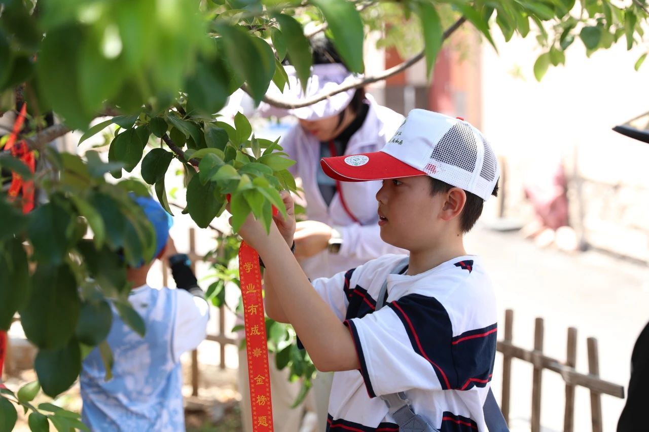 在狀元溝村,孩子們聆聽曹鴻勛狀元故事,參觀千年流蘇樹,制作并懸掛心愿卡片,在狀元門前拍照打卡,了解了狀元文化和中國(guó)古代科舉制度知識(shí),感受了狀元溝村崇文重教的傳統(tǒng)風(fēng)俗。