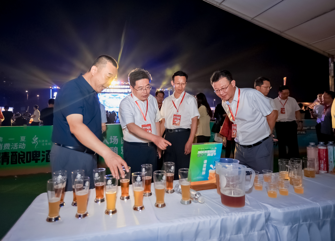 開幕式上,濟(jì)南市委宣傳部分管日常工作副部長、市文明辦主任孫世會和槐蔭區(qū)委書記孫常建開啟第一桶酒,并與濟(jì)南市人民政府辦公廳副主任譚征,濟(jì)南廣播電視臺黨委書記、臺長丁曉紅,濟(jì)南市商務(wù)局黨組副書記、副局長王志剛,濟(jì)南城市建設(shè)集團(tuán)副總經(jīng)理楊曉東,山東國際會展集團(tuán)負(fù)責(zé)同志,山東喜啤士精釀品牌運(yùn)營管理有限公司負(fù)責(zé)同志共同舉杯發(fā)出誠摯邀請,歡迎四海賓朋“泉”在濟(jì)南過暑假,為期一個月的“泉城購”夏日主題促消費(fèi)活動暨2024濟(jì)南精釀啤酒節(jié)正式啟幕。