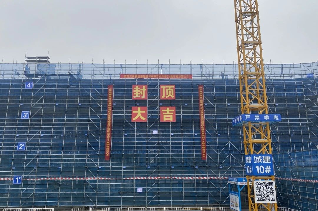 近日,由建設集團所屬濟南城建集團有限公司承建的聊城銀河中等職業學校建設項目,首棟單體建筑主體結構順利封頂,標志著項目建設取得階段性成果。