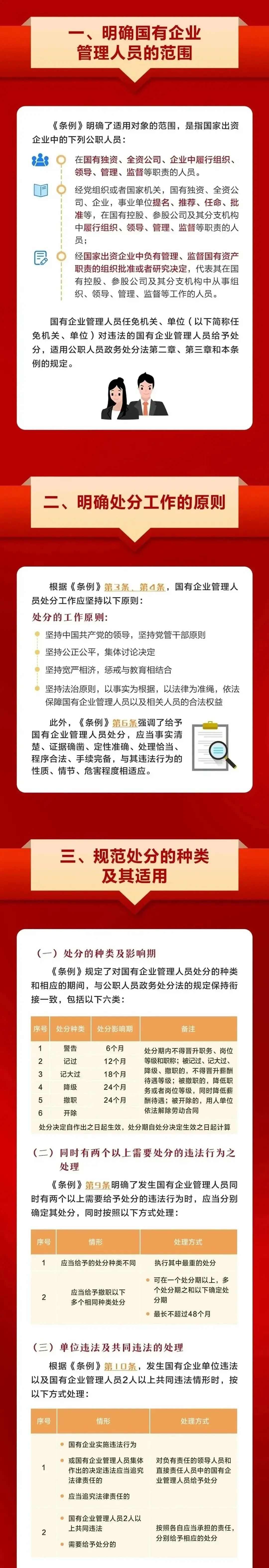 2024年4月26日,國務院第31次常務會議通過《國有企業(yè)管理人員處分條例》(以下簡稱《條例》),自2024年9月1日起施行?!稐l例》共7章52條,包括總則、處分的種類和適用、違法行為及其適用的處分、處分的程序、復核與申訴、法律責任、附則等。