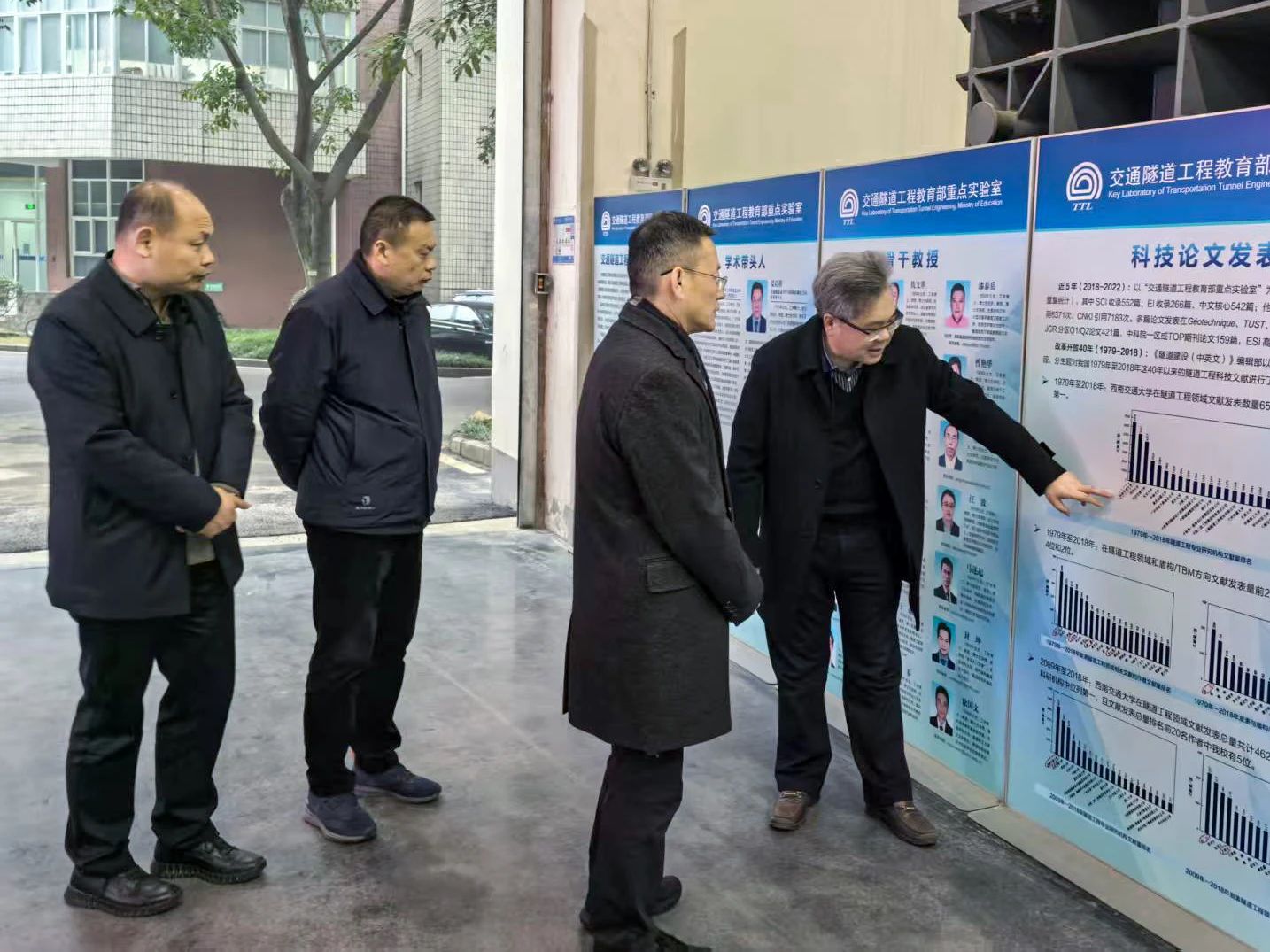 許為民一行參觀了極端環境巖土和隧道工程智能建養全國重點實驗室,詳細了解實驗室的發展歷程、師資結構、科研成果以及運行與管理機制等情況,并與實驗室負責人就相關問題進行交流和探討。