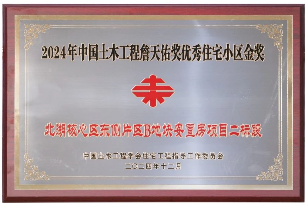 行業最高榮譽!北湖核心區東側片區B地塊安置房項目二標段獲詹天佑獎