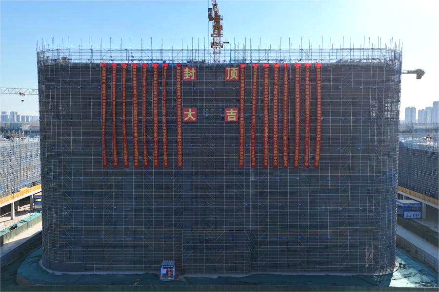 聊城銀河職業學校項目所有樓棟主體結構全面封頂。本次封頂的三個樓棟歷時18個小時澆筑完成,共計澆筑1015立方混凝土。工程建設期間,項目團隊科學統籌、精心規劃、理清工作順序,進行流水線式施工,確保各項工作有條不紊推進。緊抓施工進度、質量、安全管控,組織開展“質量月”質量提升活動,通過標準化工藝學習、技能競賽等切實提高現場施工質量,嚴格落實全員安全生產責任制,全力保障現場施工安全,助力項目全面轉入二次結構和裝飾裝修施工階段,向竣工交付發起全力沖刺。