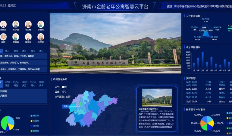 近年來(lái),濟(jì)南市金齡老年公寓加大投入力度,完善硬件、軟件建設(shè),積極探索“智慧養(yǎng)老”新途徑。硬件方面,建設(shè)數(shù)據(jù)中心,配置光纖交換機(jī)、核心網(wǎng)關(guān)、藍(lán)盾防火墻、存儲(chǔ)設(shè)備、網(wǎng)絡(luò)設(shè)備、UPS 電源、監(jiān)控大屏、機(jī)房專用空調(diào)等;每個(gè)服務(wù)站都配置專門(mén)電腦管理端,進(jìn)行數(shù)據(jù)動(dòng)態(tài)管理、分析研判及全面監(jiān)管。軟件方面,聯(lián)合知名公司啟用智慧養(yǎng)老服務(wù)平臺(tái),覆蓋營(yíng)銷、護(hù)理、護(hù)士、餐飲、物業(yè)、財(cái)務(wù)等各部門(mén),包含入住管理、長(zhǎng)者管理、日常照護(hù)、健康管理、活動(dòng)管理、費(fèi)用管理、物資管理、上門(mén)服務(wù)管理等諸多內(nèi)容,為長(zhǎng)者提供優(yōu)質(zhì)便利的養(yǎng)老服務(wù)。